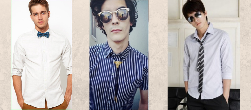 - Будет ли удачно смотреться узкая полоска ткани на однотонной рубашке? Чтобы образ выглядел завершенным, следует носить модель с широким концом верхней полоски ткани.