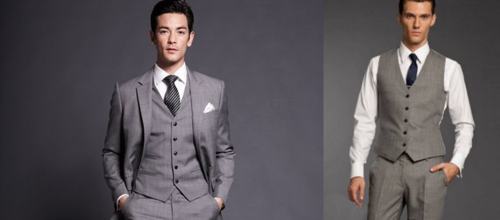 - Благодаря жилету и галстуку костюм выглядит собранным и завершенным.