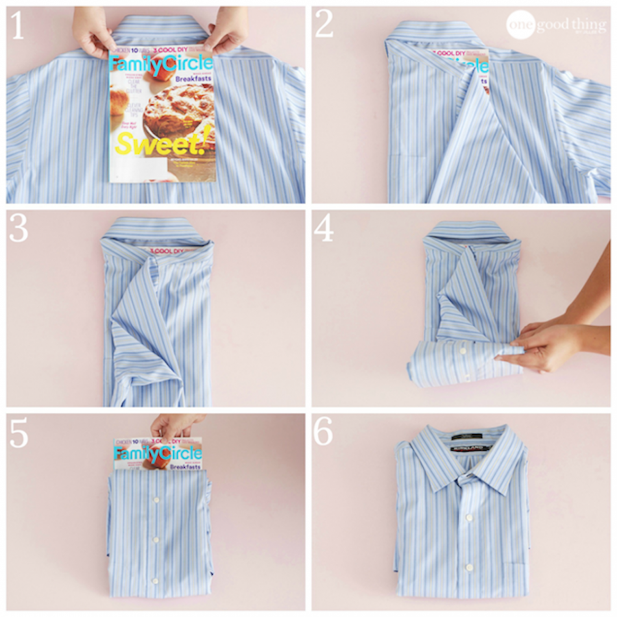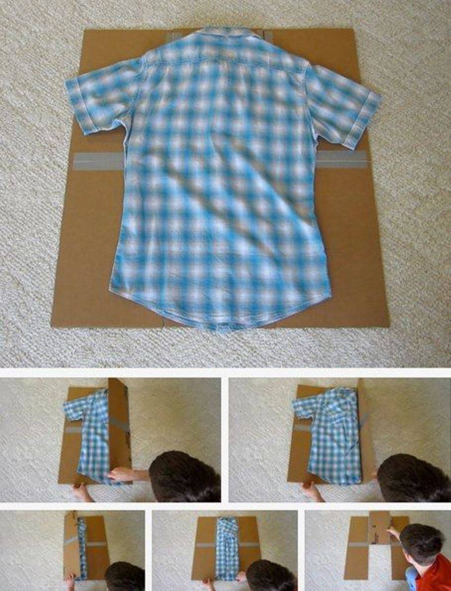 Как упаковать рубашку в чемодан, чтобы она не помялась