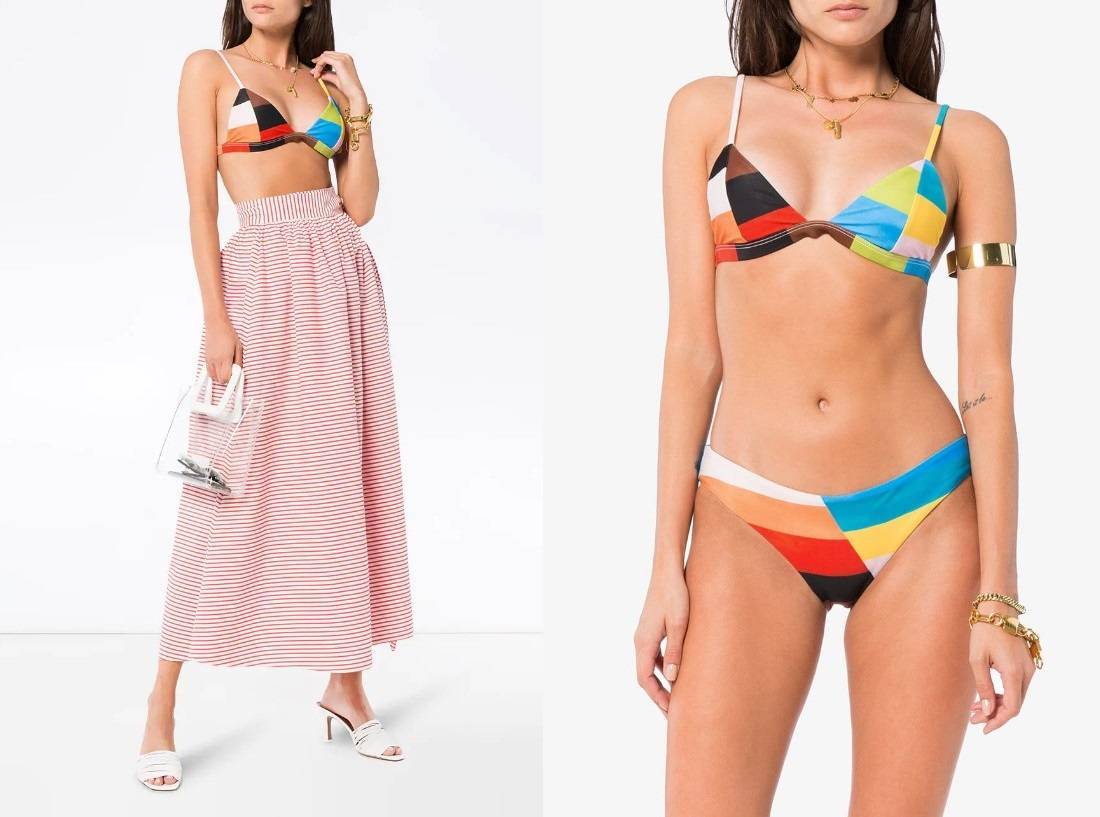 Широко представлены трусики: танго, стринги, слипы, микро шорты и модели с микро юбочкой. Но самая важная тенденция лета 2021 года – это бюстгальтеры. Модельеры выделили: бандо — широкая полоска ткани без бретелей или с петлей через шею, халтер – создает акцент в зоне декольте.