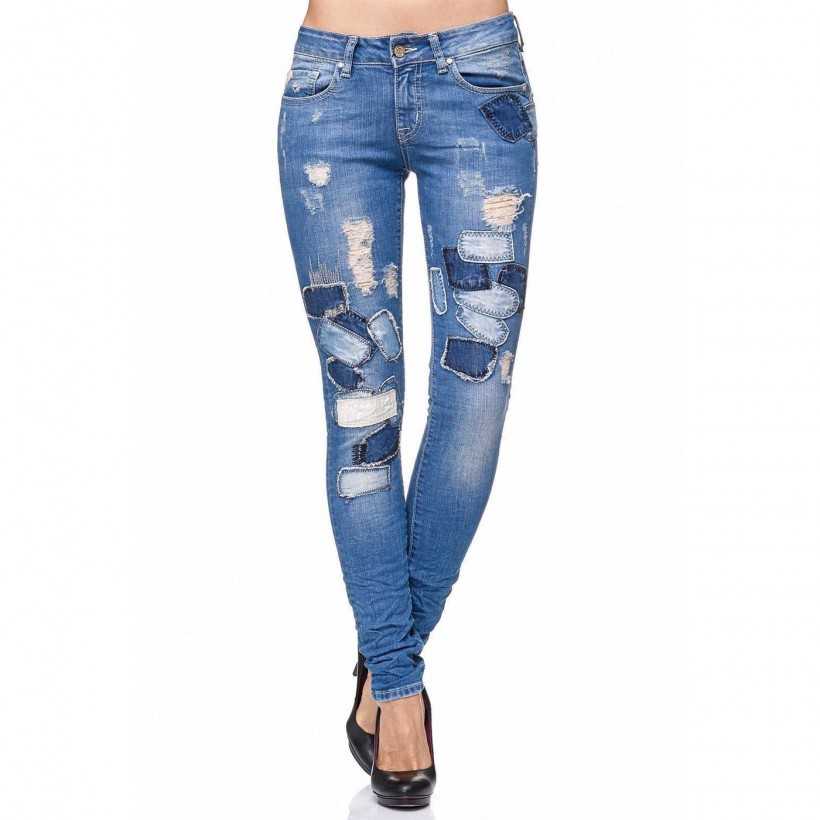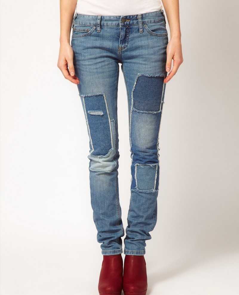 Если дырка получилась большая, некрасивая, совсем не такая, как планировалось, сквозь нее проглядывает белье или неприглядный участок тела, ситуацию можно исправить. Для этого годятся заплатки – они могут быть как из той же джинсовой ткани, так и из контрастной.