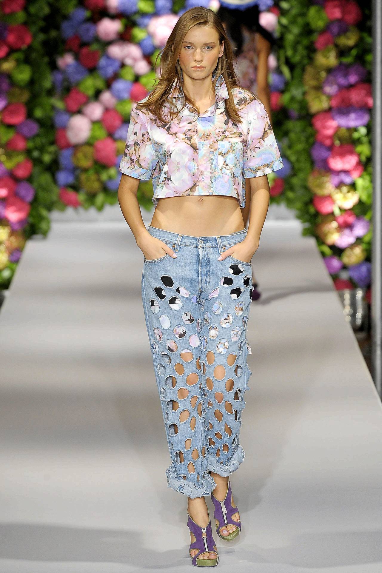 Дырки, декор неизменно будут приковывать внимание к той части тела, на которой расположены. Потому не стоит располагать их на тех местах, которые хочется скрыть – например, на бедрах с целлюлитом, на задних карманах, если есть проблема с лишним весом