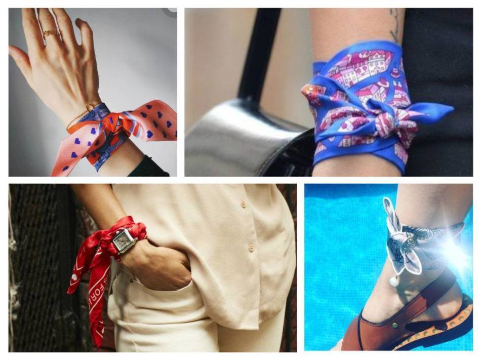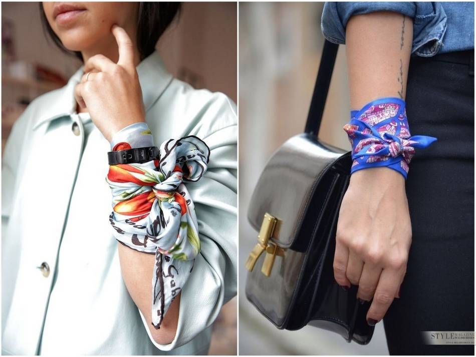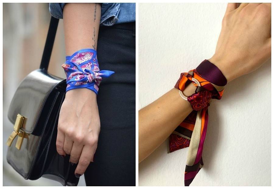 Чаще всего девушки повязывают бандану на руку, сочетая с нарядами в стиле бохо, также сверху могут надеваться браслеты из натуральных камней или деревянных бусин. Это очень интересное и необычное украшение, которое отлично сочетается со струящимися тканями с шифоном, необычными, интересными принтами.