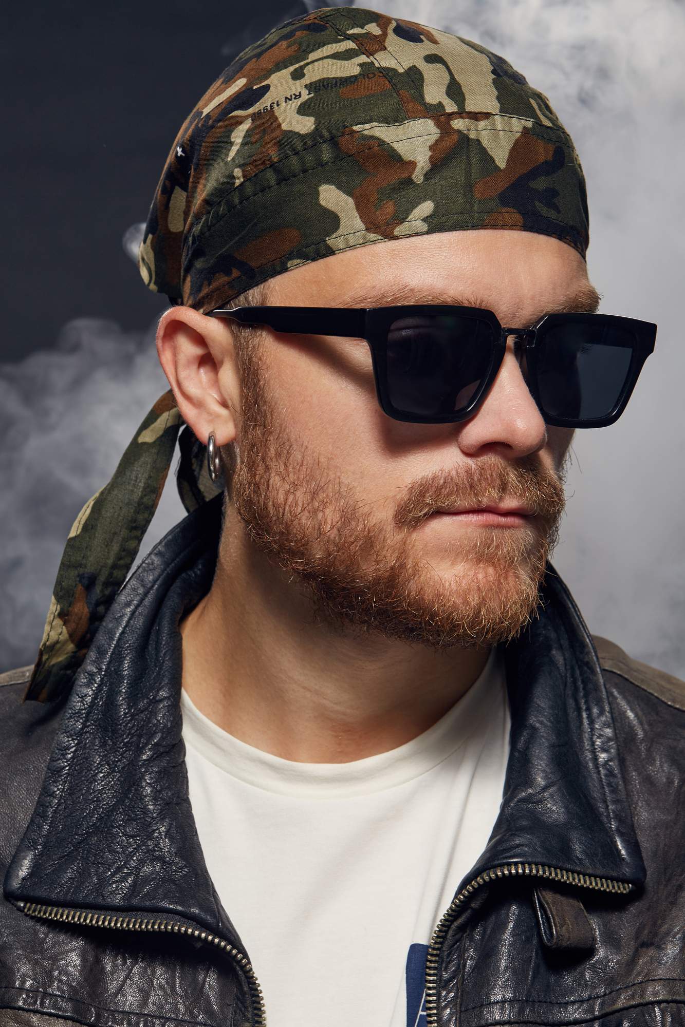 Мужчине носить бандану можно в качестве защиты от солнечных лучей. В таком случае ему подойдет классический способ или вариант в стиле Брета Майклса. Последний способ отлично смотрится как отдельно, так и в сочетании с другим головным убором, например, шляпой или бейсболкой. В последнем случае необходимо сложить ткань по диагонали. Наклонив голову вперед, надо расположить основание треугольника по центру лба. Далее кончики платка оборачиваем вокруг головы, завязав их на затылке в узелок. Образовавшиеся концы следует загнуть по направлению к завязанному узлу, а можно оставить свободными.