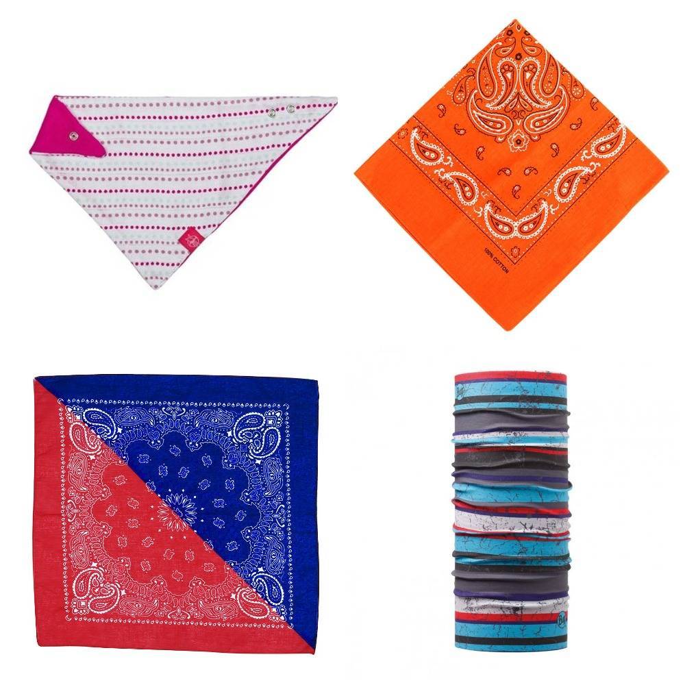 - Форма. Треугольные косынки легче всего повязать, квадратные – простые и удобные, прямоугольные относятся к стандартному типу, используются чаще других. В последнее время популярными стали банданы-баффы, выполняющие одновременно функцию платка, повязки на лицо и шарфа.
