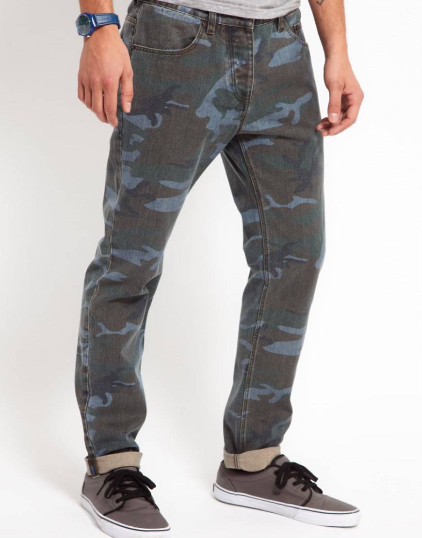 Для создания дерзкого образа следует выбрать один из фасонов джинсов в стиле милитари. Если узкие модели придутся по нраву подросткам, то широкие штаны с камуфляжным рисунком не оставят равнодушными взрослых мужчин.