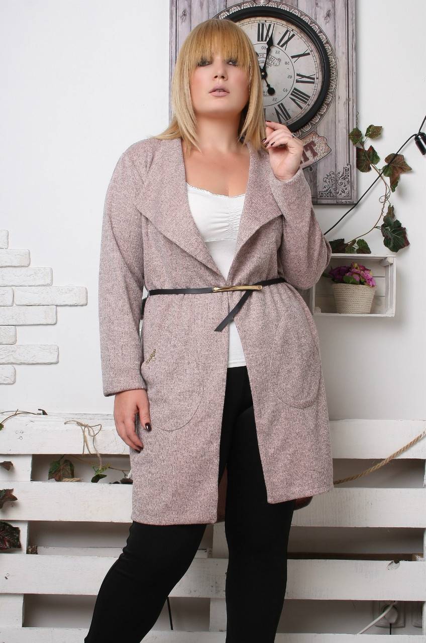 Теплые кардиганы для полных женщин, выполненные из кашемира, должны обязательно присутствовать в зимнем гардеробе. Материал мягкий, зрительно стройнит, добавляя образу изящности. Ткань приятна на ощупь, защищает от холода, ее актуально использовать в зимних аутфитах. Это шикарная альтернатива грубым, плотным тканям, делающим силуэт бесформенным, увеличивая его объемы.