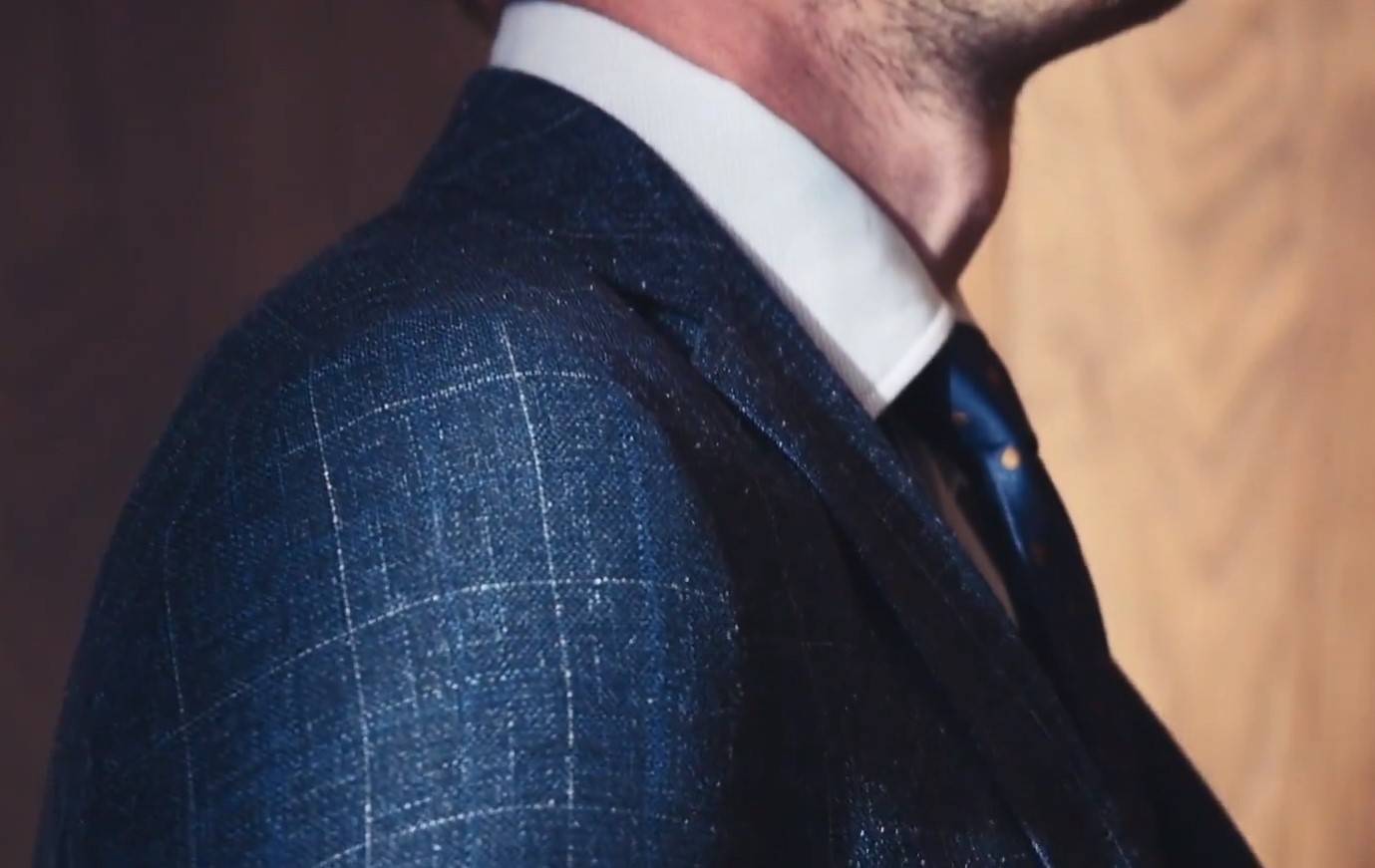 - Пиджак в плечах не должен иметь морщины, а рукав начинаться строго на границе плеча. Появление складок, провисания указывает на неправильно выбранный размер.