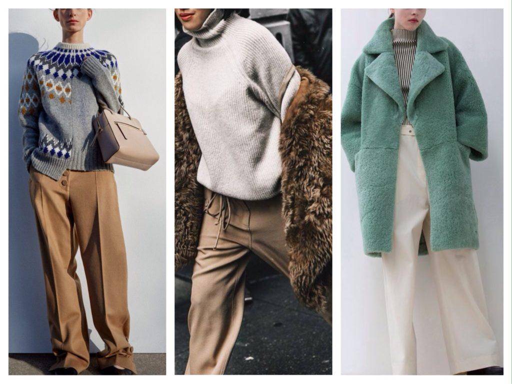 Теплые брюки, как и любые другие, нужно комбинировать с другими вещами по цвету и стилю. Ежегодно дизайнеры представляют большое количество новинок, а стилисты удивляют невероятными комбинациями аутфитов. Поэтому с наступлением холодного времени года, каждая модница сможет подобрать для себя эффектный образ.