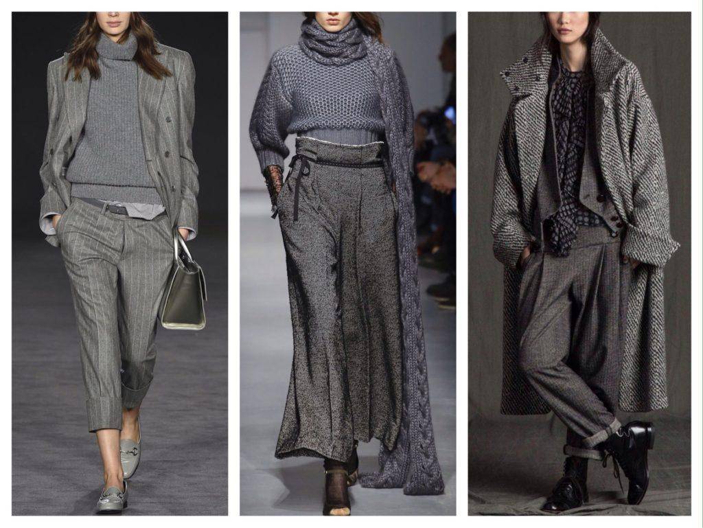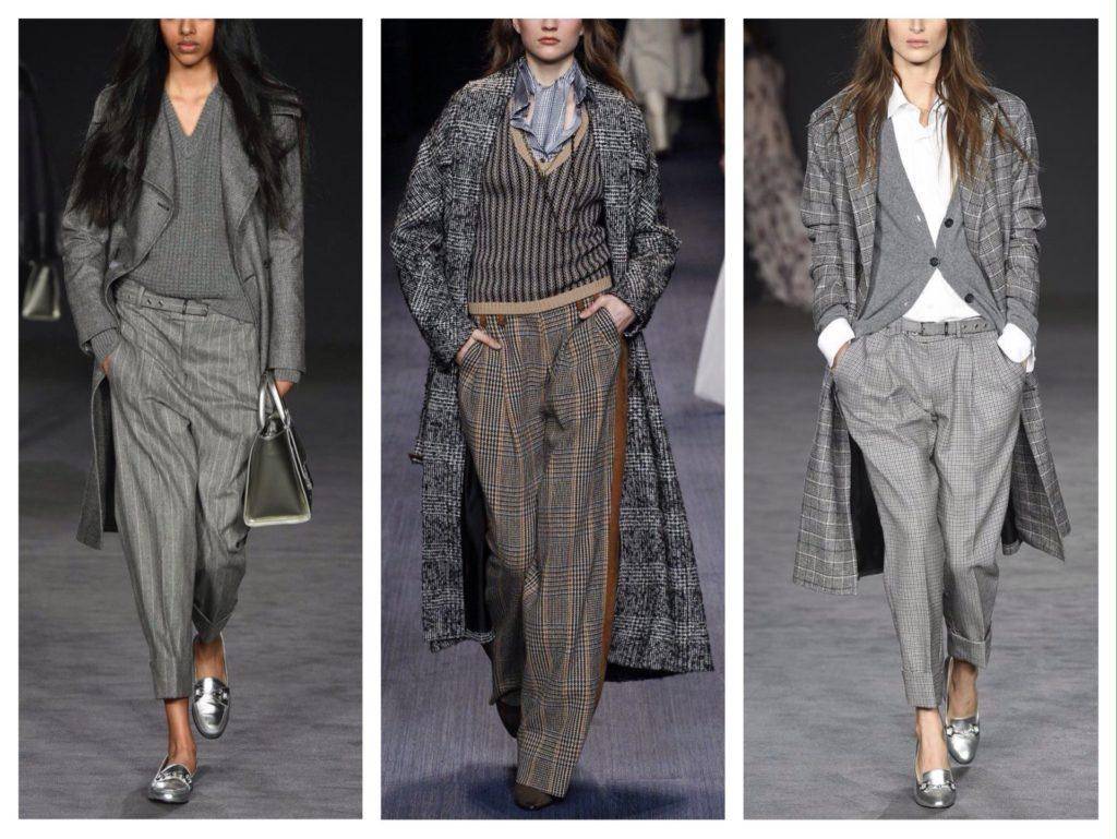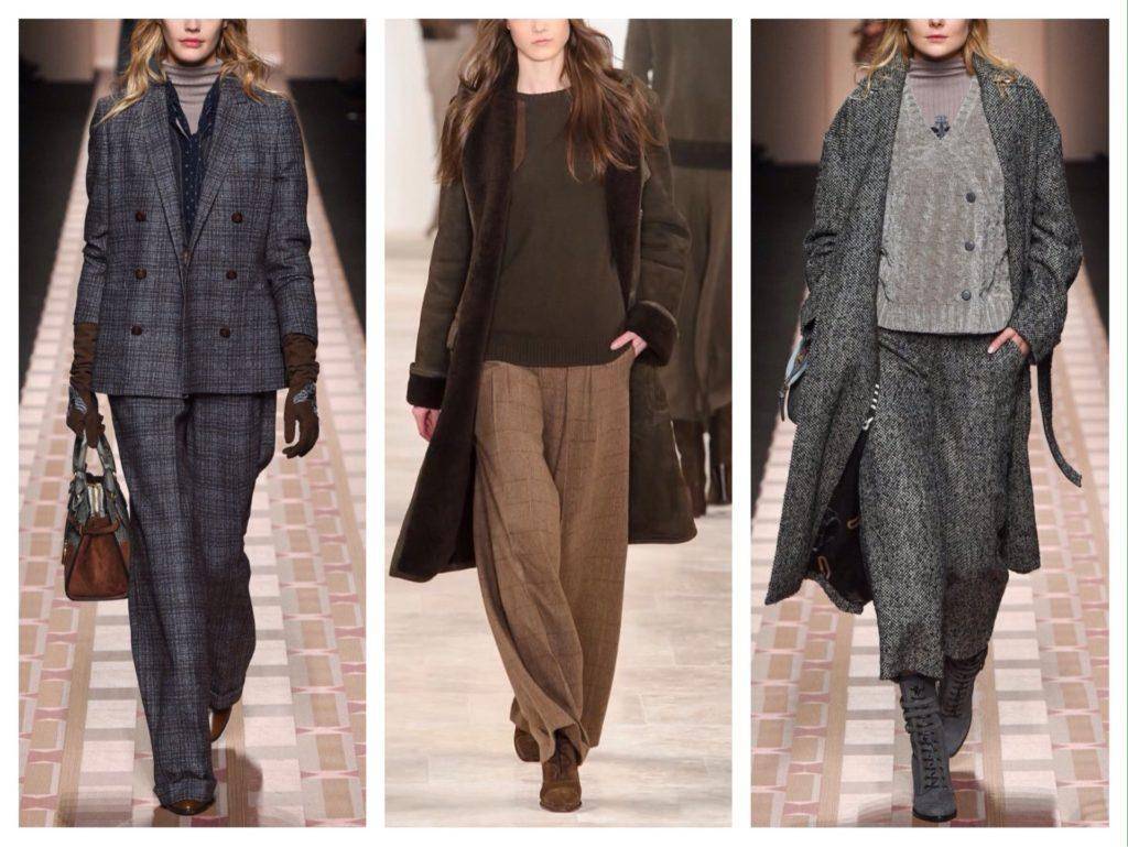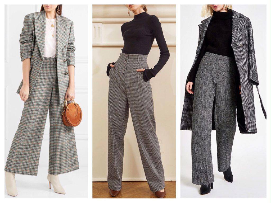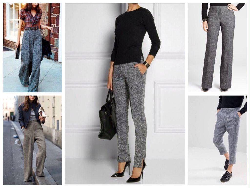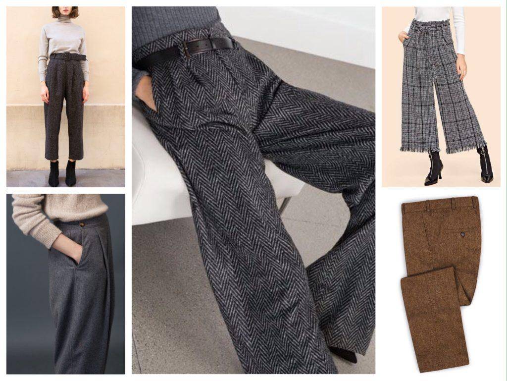Прямые или облегающие твидовые брюки на зиму комбинируют с объемным верхом и наоборот.