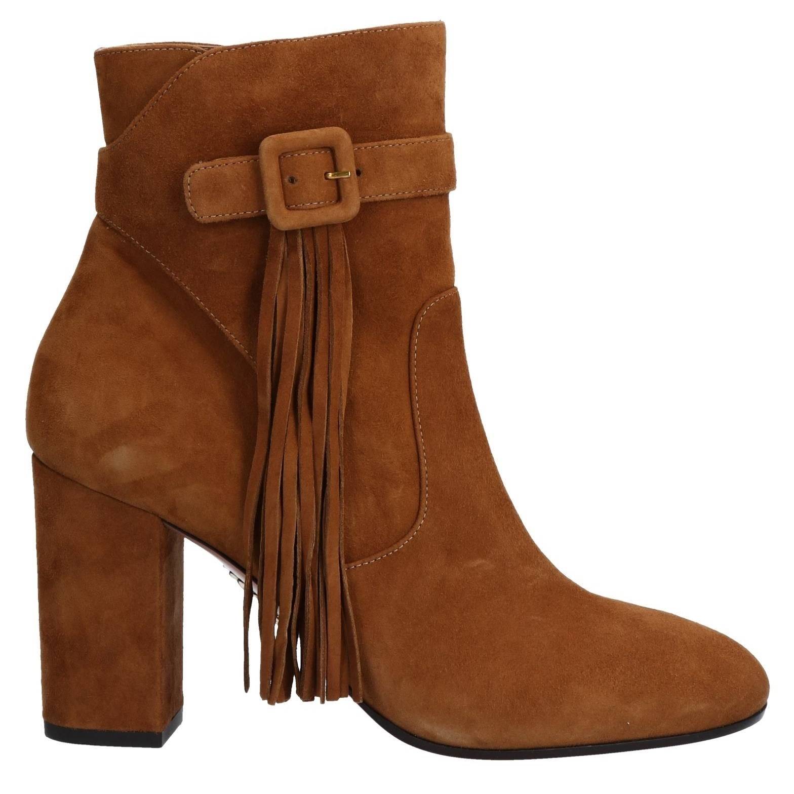 Очень красиво выглядит обувь коричневого цвета, изготовленная из замши.