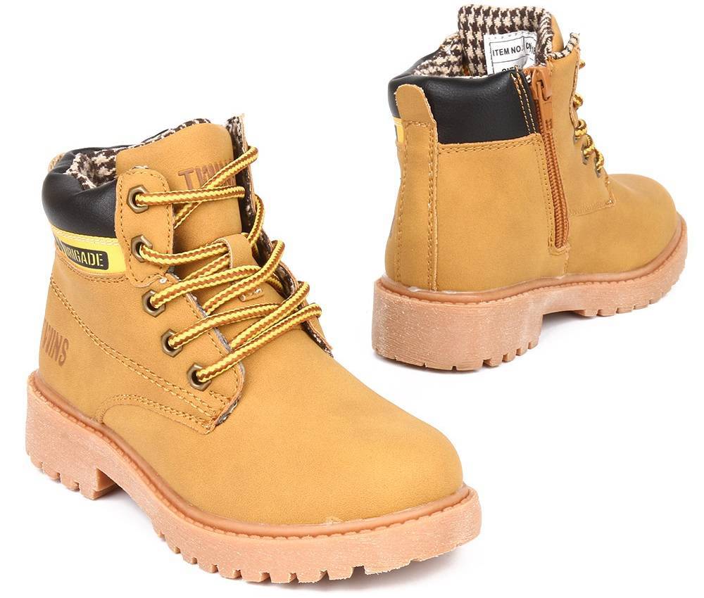 - С тракторной подошвой: грубая подошва сделает образ ребенка более современным, а во время снежной погоды защитит от падений. Подобный тип подошвы могут иметь ботинки на шнурках, молнии, липучке.
