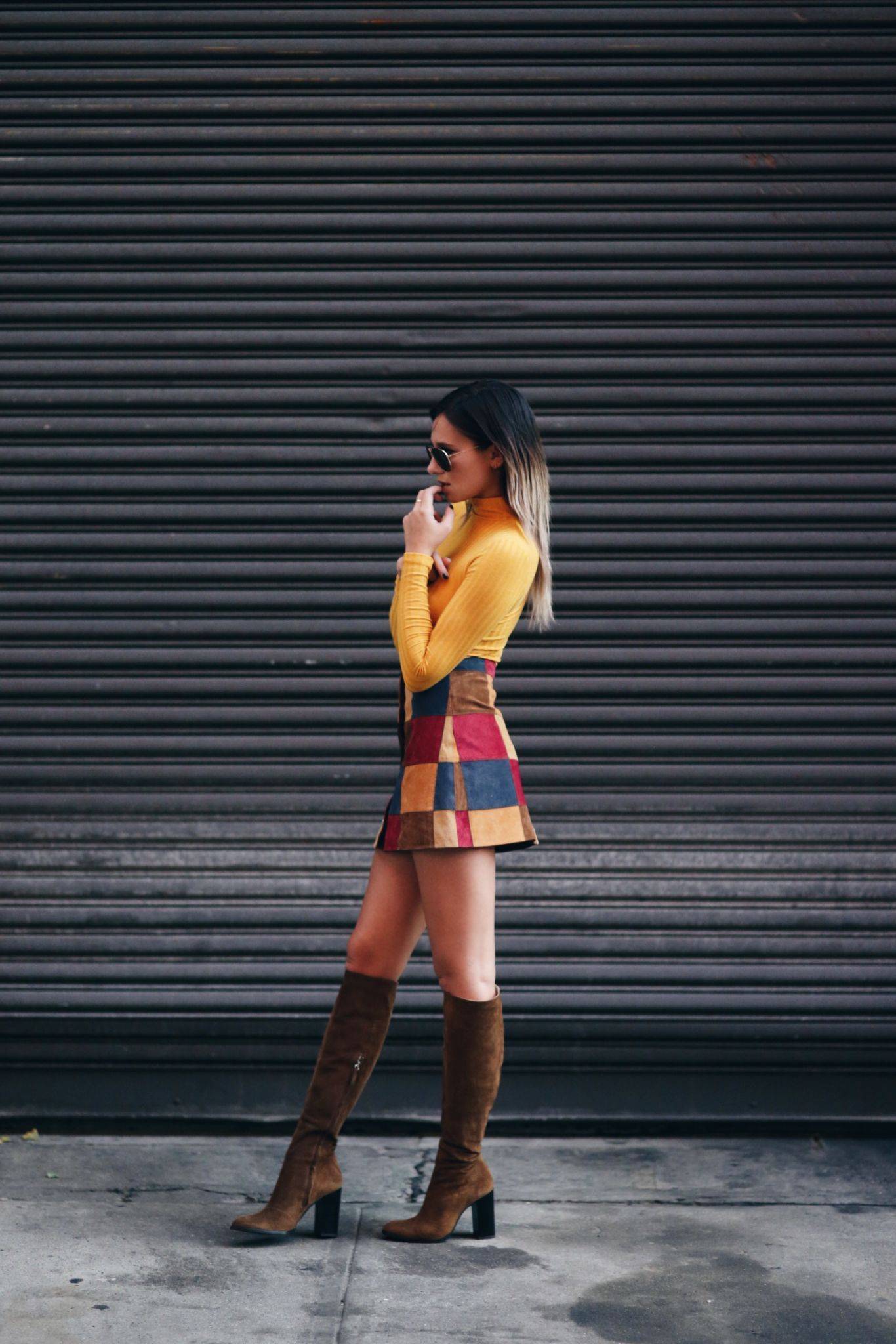 Если в вашем гардеробе можно найти трикотажное платье, шерстяную юбку или элегантные брюки, то их спокойно можно сочетать с замшей