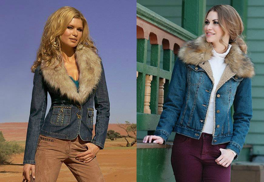 Наиболее распространены джинсовые куртки с меховым воротником, среди которых есть как полуспортивные варианты, так и вполне элегантные модели.