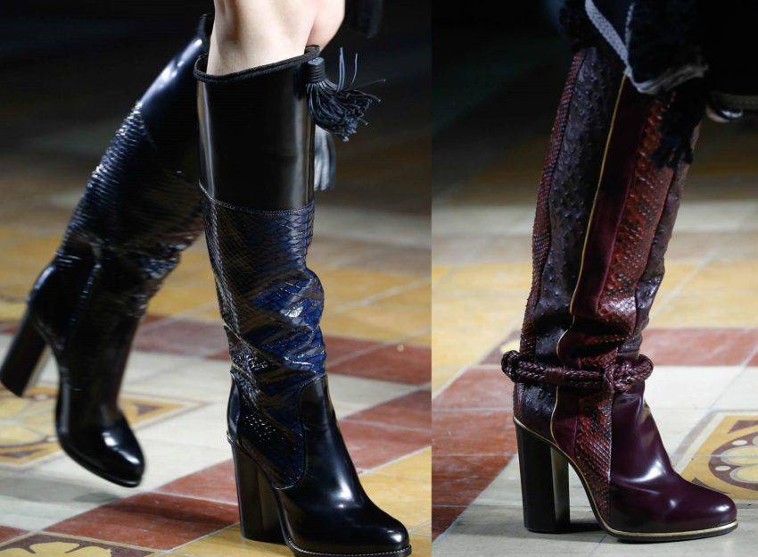 Обувь может быть самая разная, в зависимости от фасона одежды. Она играет важную роль в восприятии всей картины в целом: будут это сапоги на высоком каблуке или на низком ходу, ботильоны, ботфорты выше колена или прямые сапоги-труба