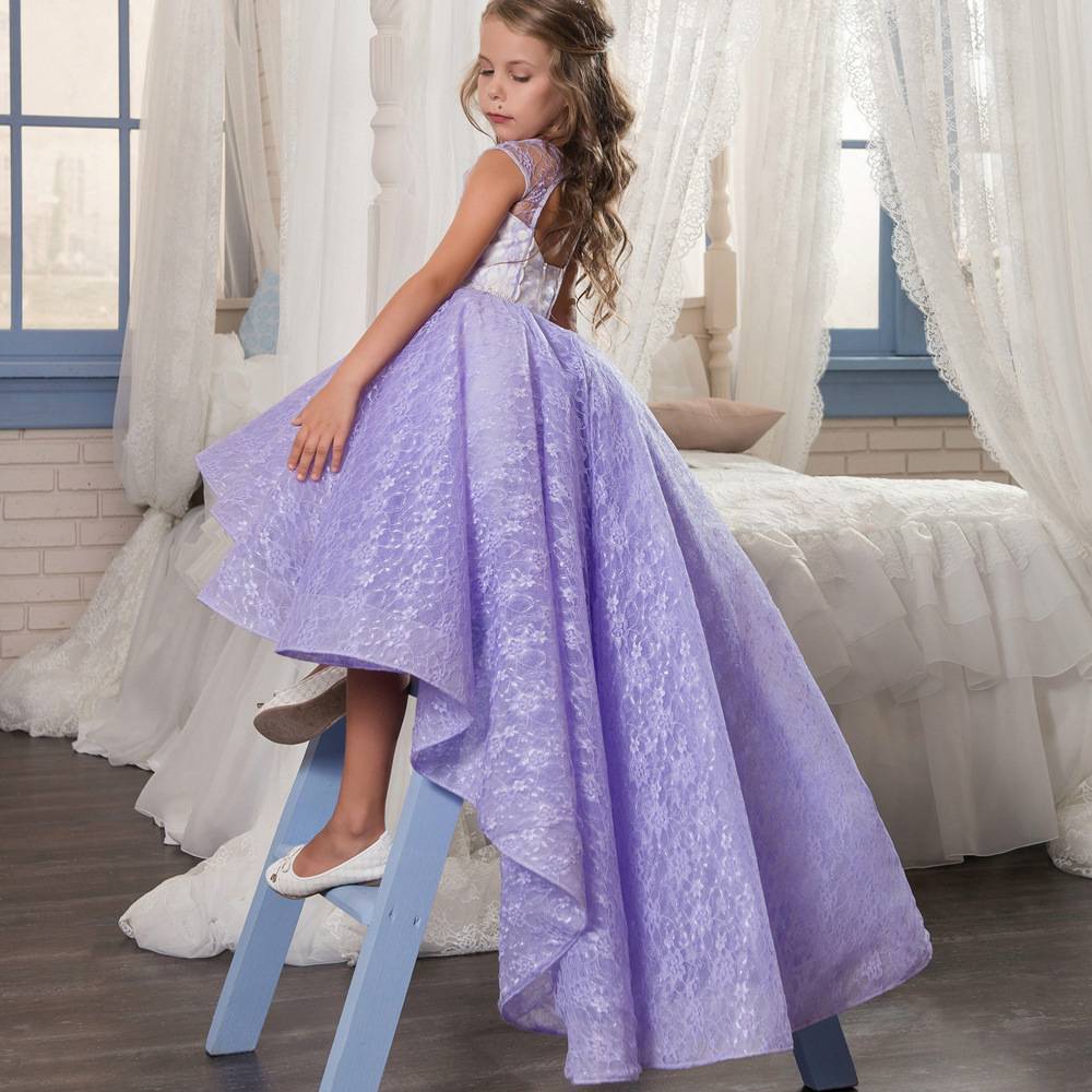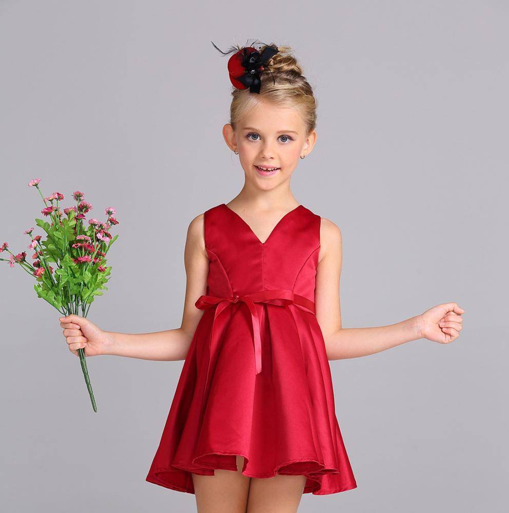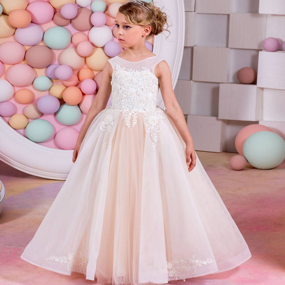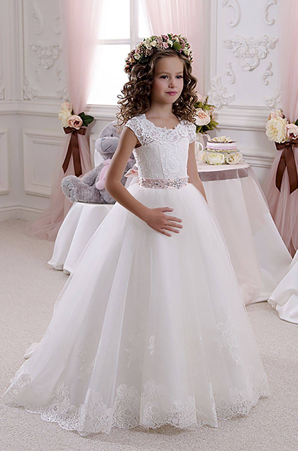 Детские платья с небольшим рукавом или на бретельках, может быть длинным и коротким, когда юбка до середины колена превращается сзади в элегантный шлейф. Лиф приталенный, украшен стразами, бисером, вышивкой. На спине может присутствовать V-образный вырез.