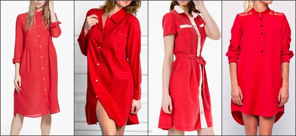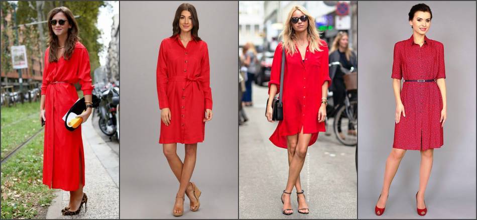 Платье-рубашка – это хороший повседневный вариант. Пожалуй, это единственный вариант красного платья, который допускает самые смелые сочетания.