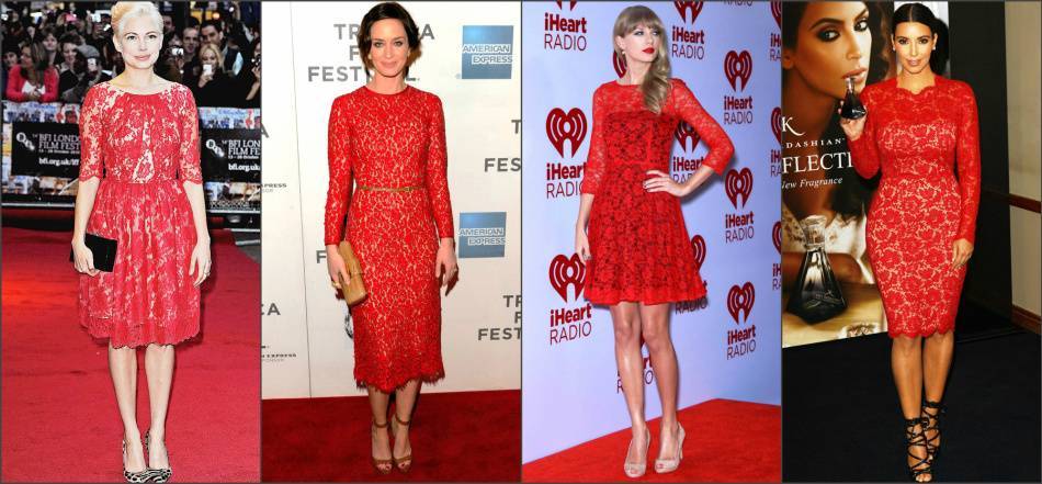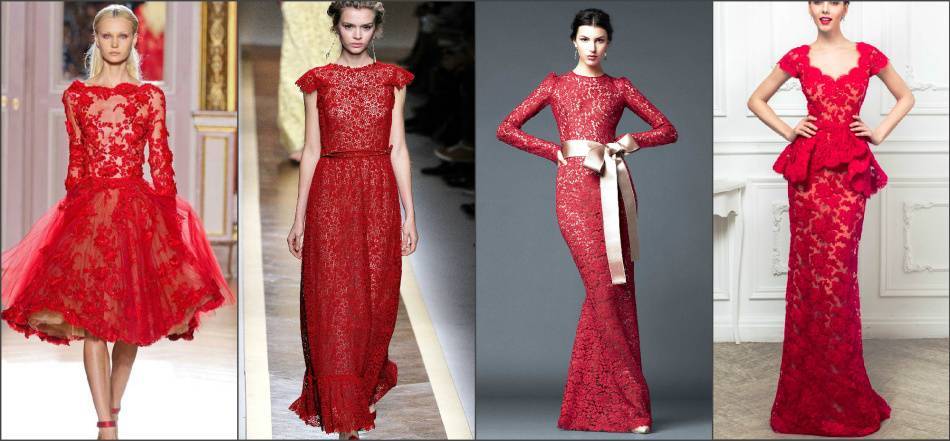 Кружевное красное платье – очень женственный и изящный вариант. Аксессуары должны быть соответствующие: элегантные туфли-лодочки, сдержанный клатч, ненавязчивые украшения.