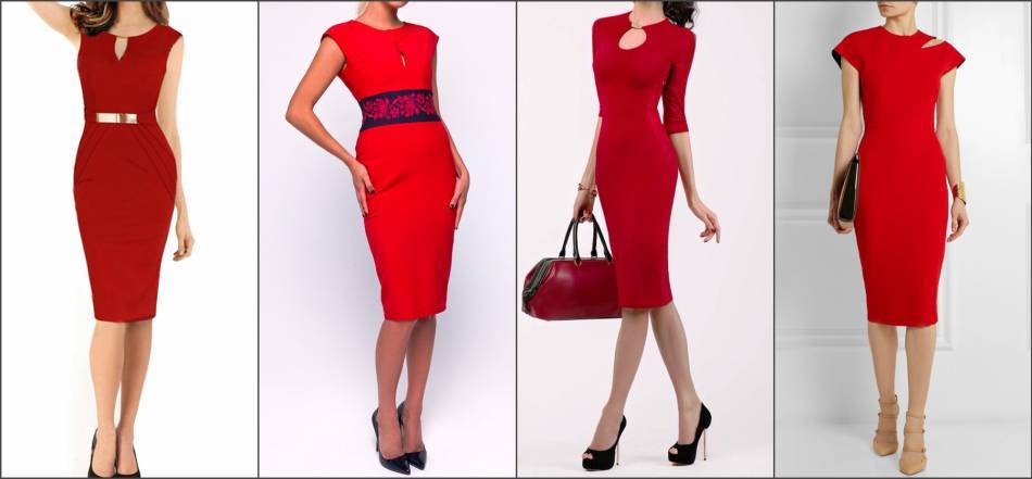 Красное платье-футляр – вариант очень самодостаточный и универсальный. Оно не требует украшений, сочетается практически с любой обувью – от босоножек до ботильонов, хорошо гармонирует с другими предметами гардероба.