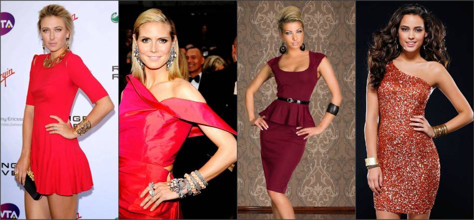 Если вы собираетесь носить короткое красное платье, как вечерний наряд, в качестве украшений лучше всего выбирать простую и массивную бижутерию. Крупное колье и длинные серьги будут смотреться таким платьем лучше всего. Широкие браслеты подойдут, если вы ищете, с чем носить красное платье без рукавов.