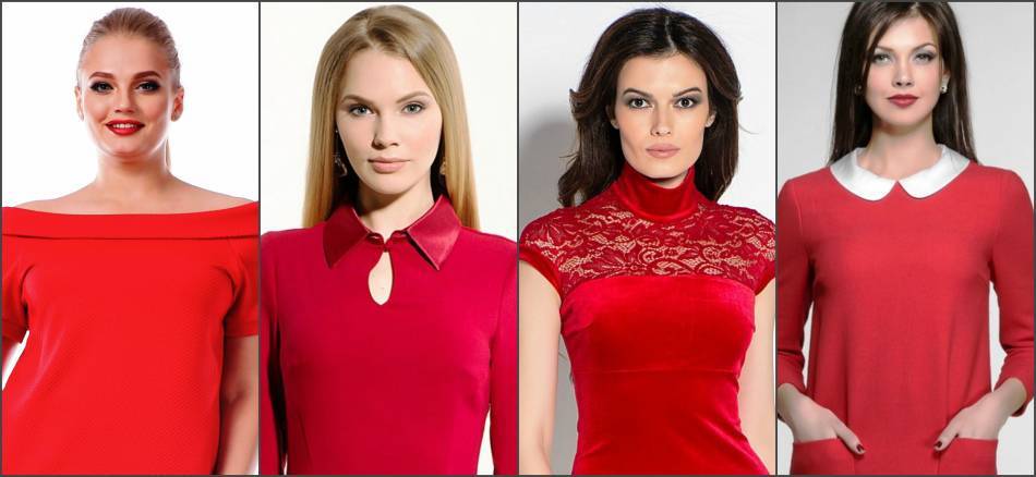 В осенний и зимний сезон тоже не стоит отказывать себе в ярких ансамблях с алым нарядом из самых разных материалов: начиная от трикотажа и заканчивая бархатом или даже шерстью. Такой образ, непременно, следует дополнить колготками или чулками, лучше всего – телесного, черного или серого цвета. Поверх можно накинуть теплый вязаный пуловер или пиджак, который придаст ансамблю непринужденность. В качестве обуви выбирайте варианты на каблуке разной высоты или на платформе. Цветовая гамма: черно-коричневая или бежево-карамельная.