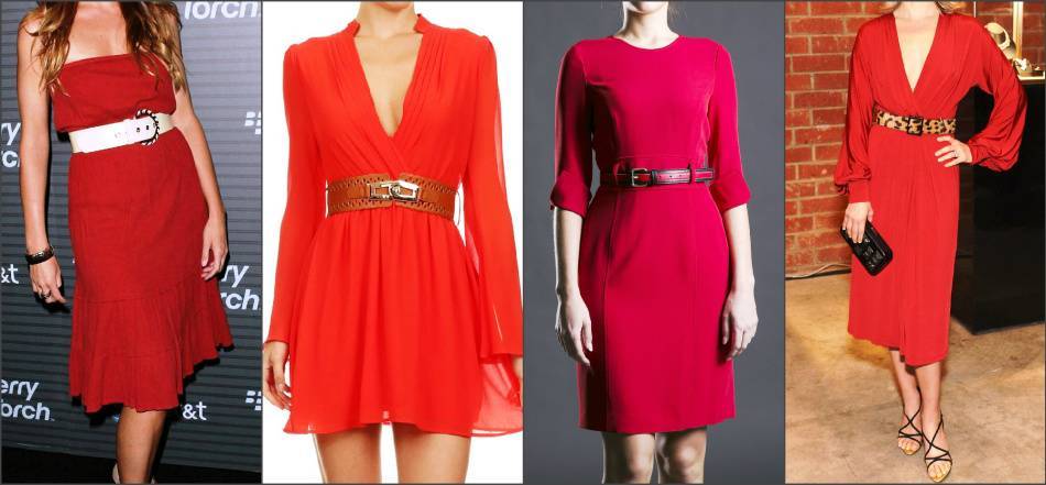 - коричневый – повседневный вариант, прекрасно дополняет красный цвет платья. По мнению стилистов, больше подходит для осеннего наряда.