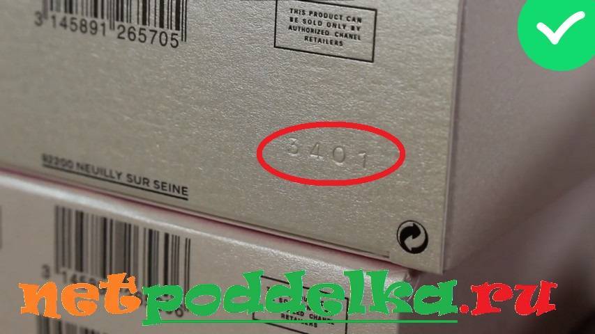 В следующую очередь необходимо проверить наличие. На парфюмах от Шанель должен присутствовать штрих – код или батч – код. Кроме кода на подлиннике пишутся контактная информация производителя. В каждой стране у бренда Шанель есть свои представительства. Каждое представительство имеет свой собственный штрих – код. Только оригинальные коды должны указываться на коробке. Батч – код имеет 4 цифры и наносится на дне обертки. Такой код наносится определенными сериями. Место расположения штрих – кода зависит от объема парфюма. Например, на упаковке в 50 мл код написан на дне. А другие надписи написаны на всех сторонах коробки.