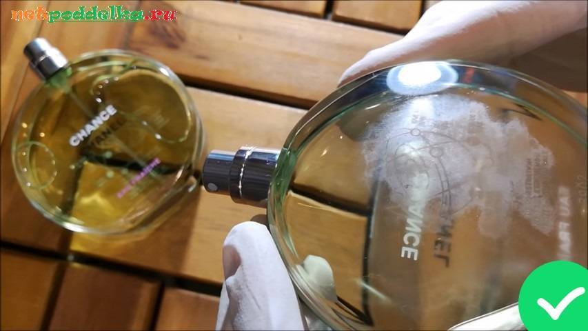 Для разлива подделок могут применяться грубые флаконы с неровностями. На изящность пузырька влияет материал изготовления. Для изготовления качественных флаконов применяются только особый вид стекла.