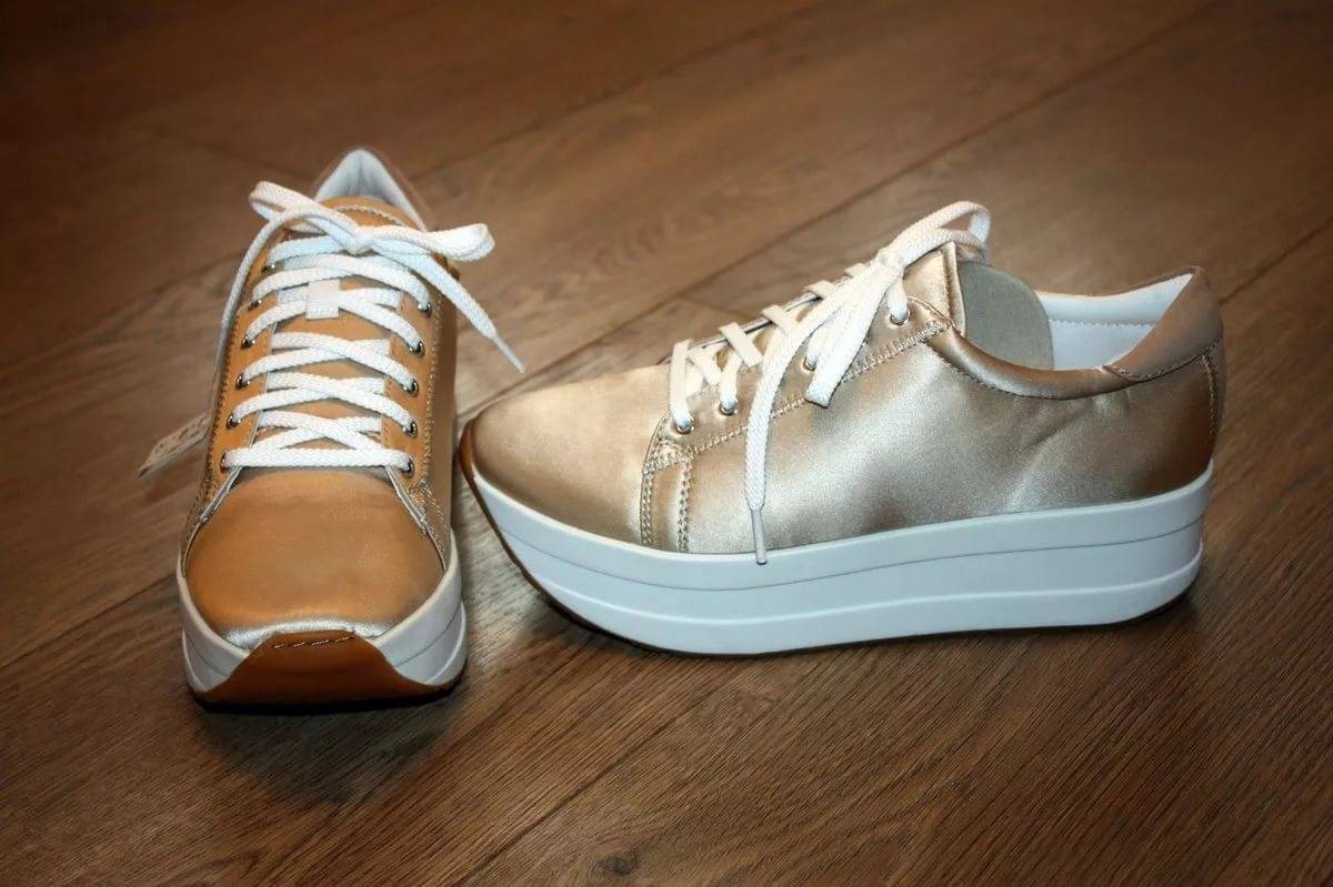 В моде женские кроссовки на каждый день на танкетке. В таких моделях вместо шнурков используются липучки. Это удобно, так как застегивать обувь можно в разы быстрее. Визуально она уменьшает размер ноги, что для девушек является приятным бонусом. Но ходить целый день на танкетке не рекомендуется.