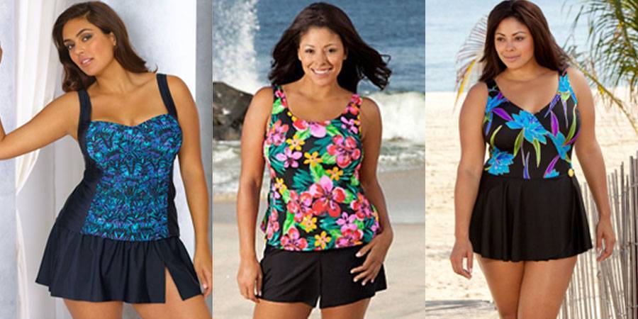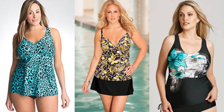Купальные платья больших размеров для полных женщин имеют три отличительные расцветки: