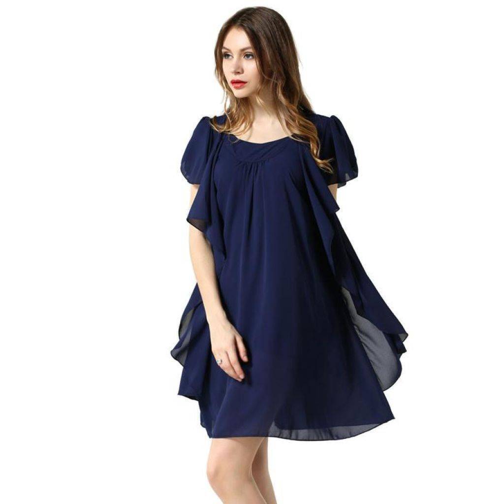 Для того, чтобы подобрать шифоновое платье для полныхстоит обратить внимание на среднюю длину, прикрывающий коленную чашечку и свободный силуэт.