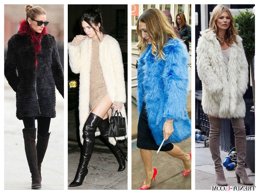 - в последнее время популярны комбинированные модели, в которых искусственный мех сочетается с натуральным, например, из лисы, зайца, енота. Эффектные вставки на рукавах, капюшоне или по вороту подчеркивают грациозность хищной расцветки. Усиливают воздействие экстравагантные цвета модных шуб – зелёный, синий, голубой, розовый;