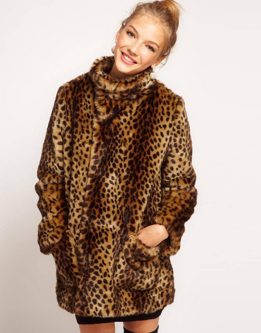 Шуба из искусственного меха с леопардовым принтом ASOS — Мульти. Стиль: искусственная, классическая, с лацканами, вечерний; Расцветка: леопардовая, с принтом.
