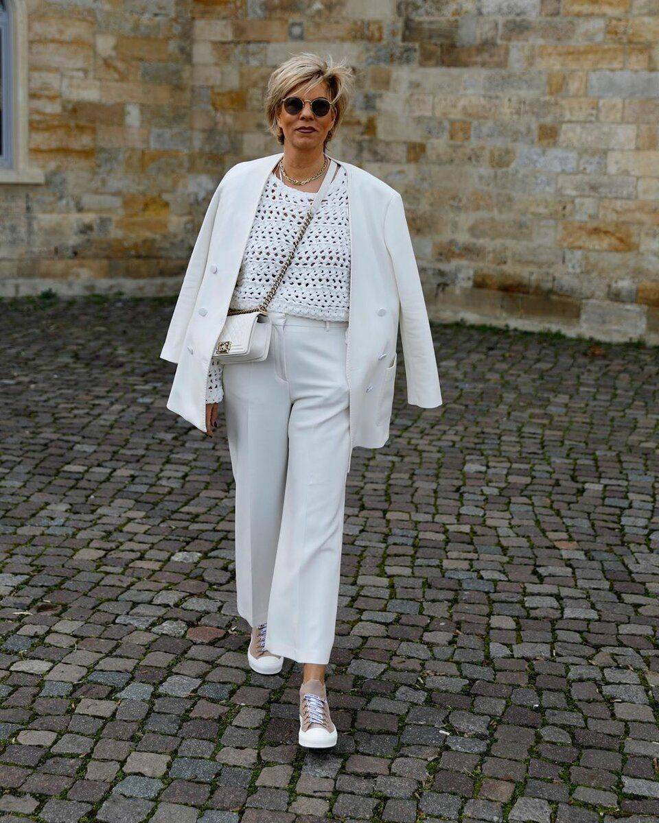 Каждая женщина знает, что классические костюмы прекрасно скрывают недостатки и подчёркивают достоинства фигуры, особенно, если вам речь идёт о столь пикантном возрасте, как 50 лет, когда при создании любого образа делается акцент на элегантность и женственность. Поэтому стилисты рекомендуют обязательно присмотреть несколько вариантов подобных изделий из качественного трикотажа, льна или хлопка для создания стильного лука весна-лето 2021.