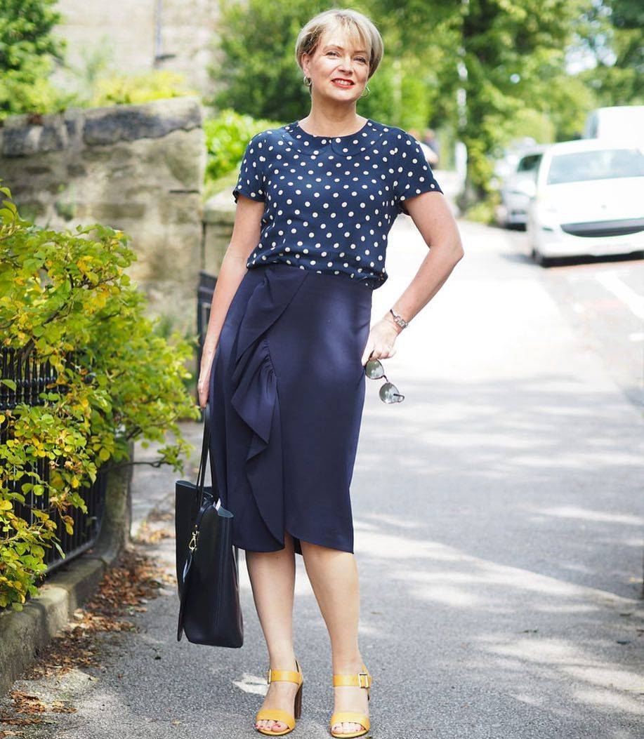 Юбка – это не только неотъемлемая часть женского гардероба, но и идеальное решение для создания делового образа, особенно если речь идёт о моделях прямого кроя либо юбке-карандаше, которые, по мнению стилистов, наиболее удачно подходят для базового гардероба женщин 50 лет. Подобный атрибут гармонично смотрится с обувью на каблуке и прекрасно сочетается с блузами, удлинёнными жакетами или пиджаками. Среди модных новинок множество однотонных изделий и юбки в строгую клетку, а также аксессуары с оригинальными вставками и сдержанным декором.
