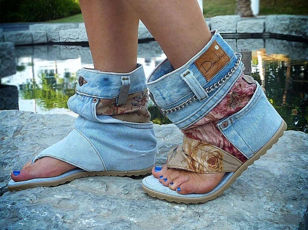 Летние сапожки из джинсовой ткани могут быть длинными или короткими, с украшениями в виде декоративных кармашков или потертостей. Кисточки, бахрома, разнообразные металлические элементы – все это будет уместно на летней джинсовой обуви. Разнообразие представленных изделий позволяет создать почти классический образ или неожиданно оказаться хулиганистой девочкой-подростком. Особенно они актуальны прохладным летним вечером.