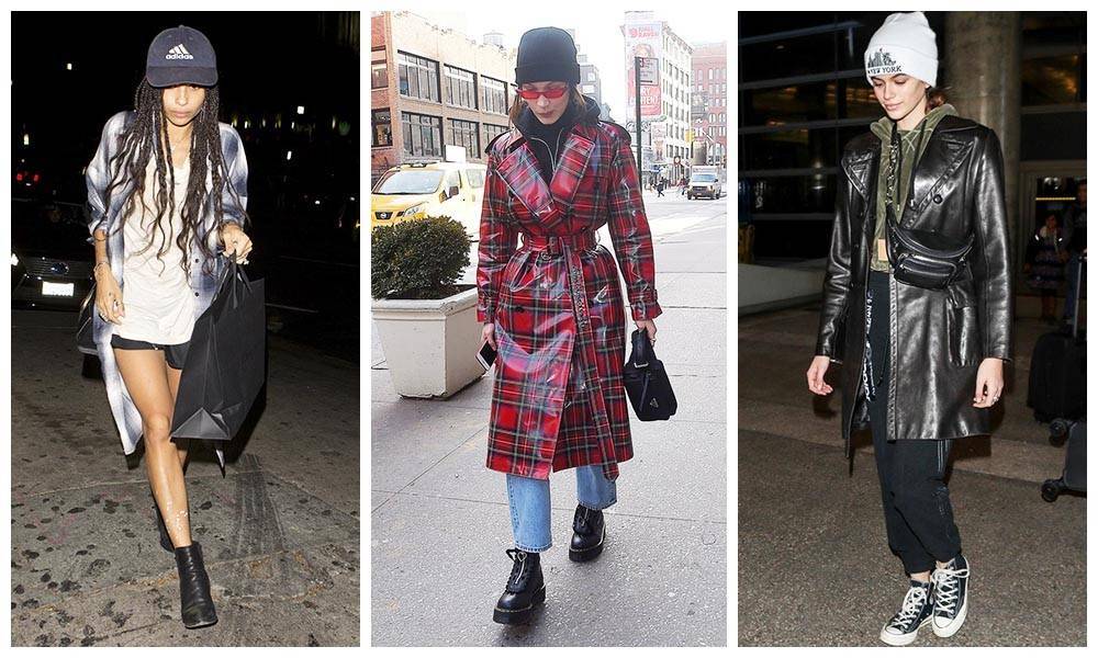 Софт предполагает менее тяжелую обувь в стиле гранж – на фото с модных подиумов появляются небольшие ботиночки. Хотя беспроигрышным вариантом при составлении гранжевого лука по-прежнему будут: