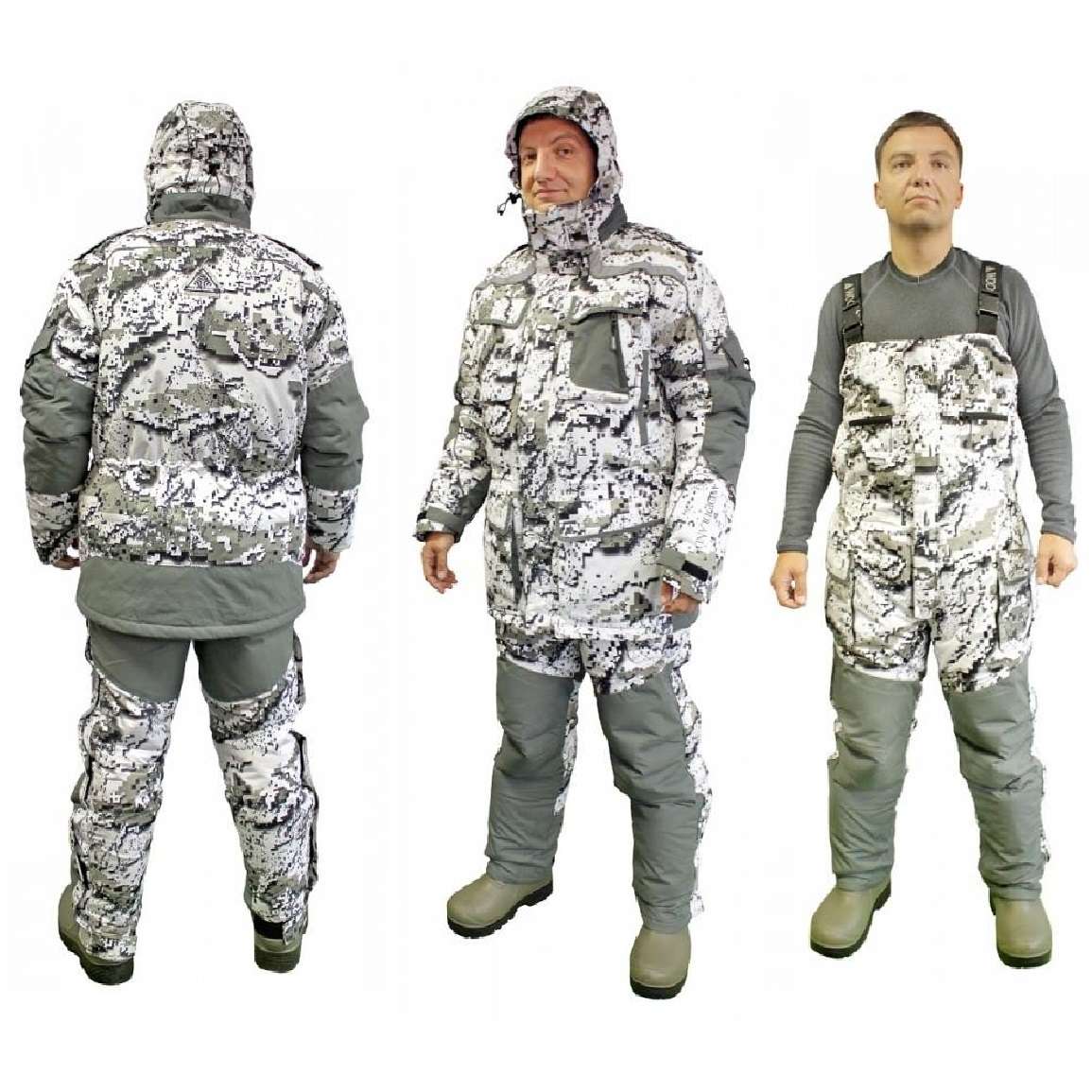 Зимний мужской костюм, предназначенный для эксплуатации при температуре до -40°C. Изделие разработано, как одежда для зимней рыбалки и охоты, с полной адаптацией для езды на снегоходах, с возможностью использования в условиях повышенных физических нагрузок и стационарном режиме. Костюм изготовлен из высококачественной мембранной ткани, поэтому в нем не страшны даже суровые морозы.