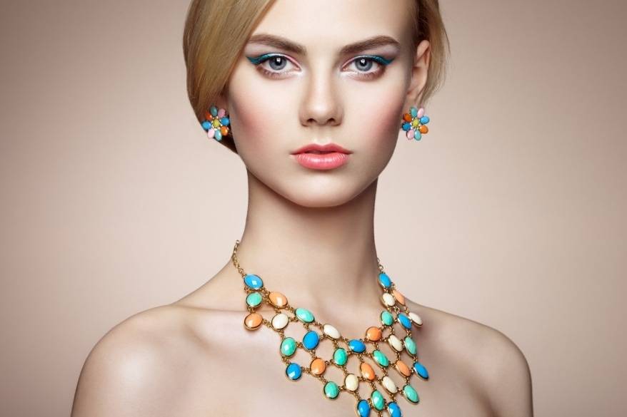 Еще несколько трендов, о которых стоит упомянуть. Дешевые пластиковые колье со стразами. Обычно геометрической формы или с цветочными мотивами. Несмотря на безыскусные материалы, такие украшения долго были популярными даже среди взыскательных модниц. Выглядели они нарядно и в то же время мило. Их носили с деловыми костюмами и романтичными платьями, вечерними нарядами и повседневной одеждой.