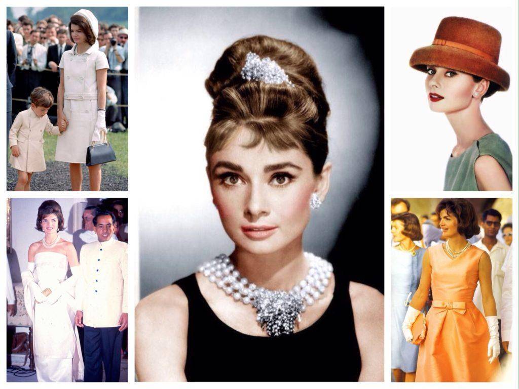 Но не только модельеры оказывали влияние на моду 1960-х годов. Это время ассоциируется с некоторыми кинозвездами и другими медийными личностями. Одна из самых известных — Одри Хепберн. Конечно, она стала примером элегантности еще в 50-х. Но именно в рассматриваемом десятилетии она воплотила образ Холли Голайтли (фильм «Завтрак у Тиффани») — длинное черное платье, которое оставляет открытыми плечи, перчатки, высокая прическа, жемчуг и бриллианты.