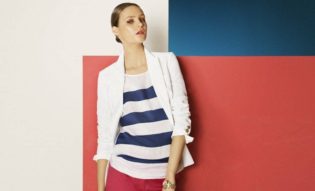Морской стиль в женской одежде характеризуется в основном классической цветовой гаммой, которая первой приходит на ум при слове «морской»: чередование белой и синей полосы. Как вариант — белый с красным.