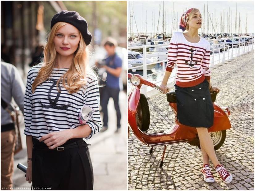 Тельняшки и в целом одежда в горизонтальную полоску всегда ассоциировались именно с морским делом. Поэтому стиль практически сразу же получил название морского.