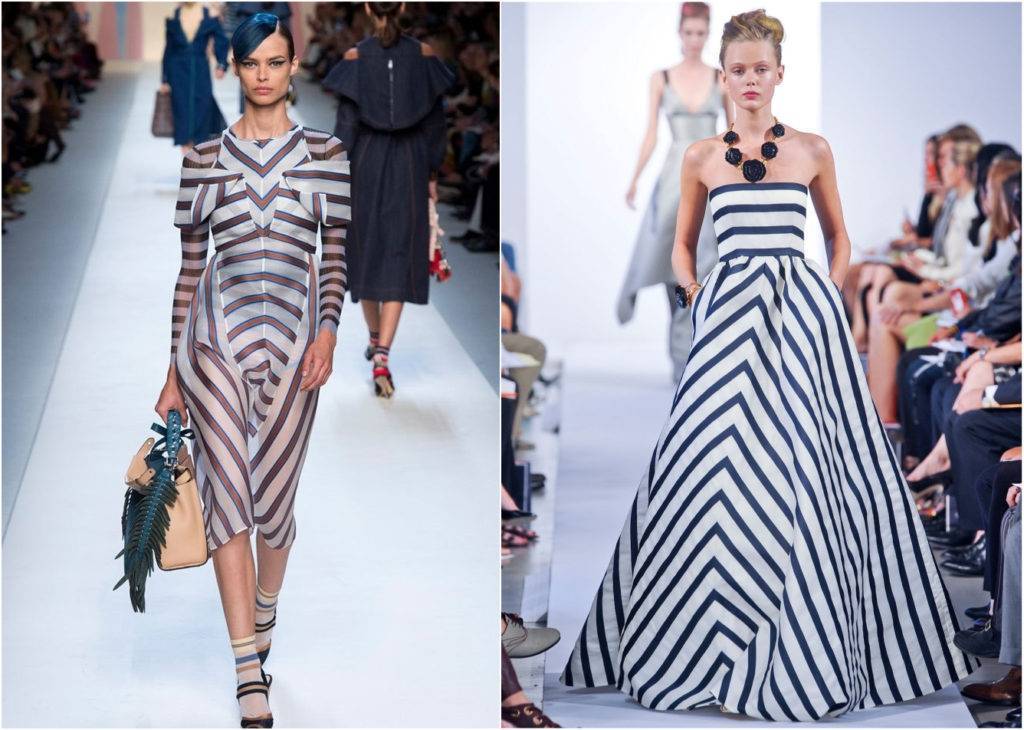 Примеряя платье с полоской, обратите внимание на ее эффекты: горизонтальные линии зрительно увеличивают фигуру, вертикальные — вытягивают силуэт, а диагональные придают динамичность и энергичность. Учитывайте это при выборе фасона