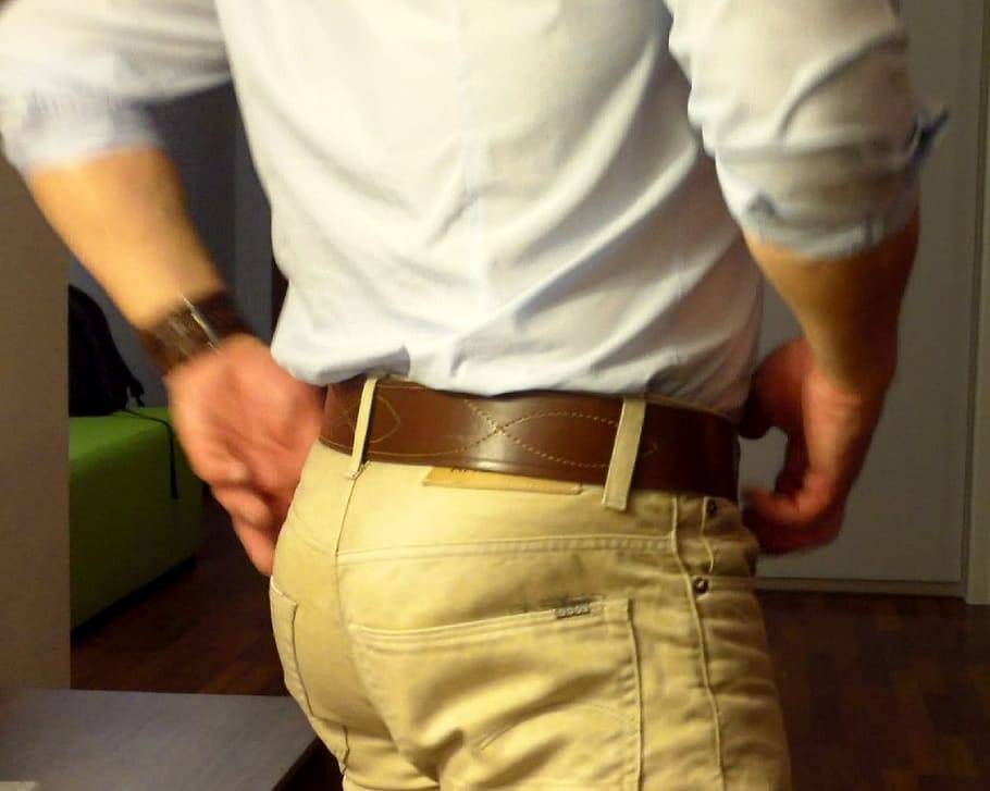 Стандартный пояс традиционно должен соответствовать размеру талии. Одно измерение проводится от начала пряжки до ближайшего отверстия (т. е. самого плотного ремня, который может быть застегнут), а второе – до среднего отверстия.