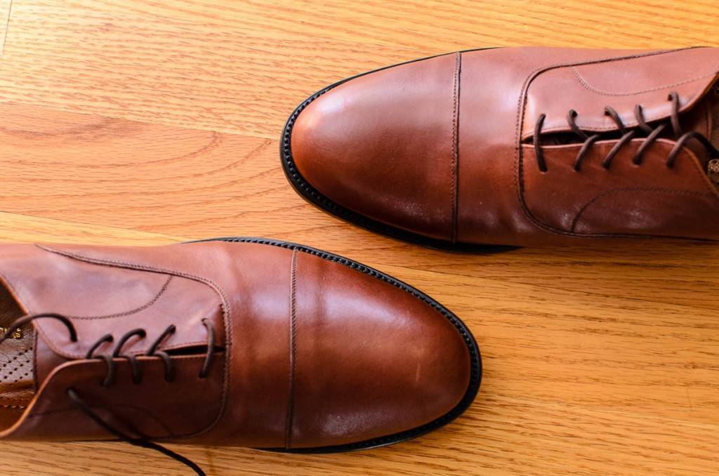 - Cap-Toe Oxford. Что касается cap-toe, то это ботинки с закрытой шнуровкой, у которых в передней части имеется одна или две линии строчки. Они выделяют носок обуви, придавая ему немного острый вид. Их принято носить с вечерней одеждой, костюмом или блейзером. Подобная модель туфель хорошо выглядит в классическом черном цвете, но доступны также и коричневые, бежевые или бордовые оксфорды;