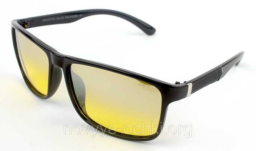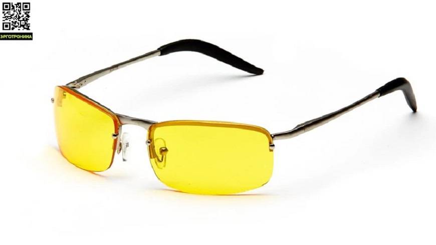 - Поляризованные. Жёлтые очки для водителей с поляризацией очень популярны. Но не все понимают, для чего они предназначены на самом деле. Такая линза защищает глаза от УФ-лучей и поперечных отражений, а также снимает напряжение с глаз при длительном нахождении за рулём.