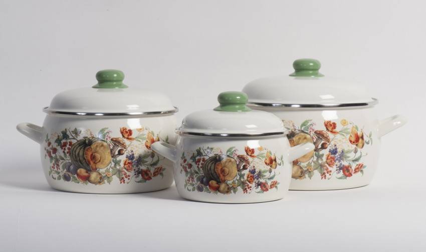 Каждый кухонный гарнитур должен иметь по крайней мере одну кастрюлю. Это должна быть емкость не менее 1 литра, но при приготовлении пищи для групп она должна быть больше. Многие кухонные гарнитуры имеют второй горшок, который немного меньше и помещается внутри большего. Кастрюли всегда должны быть с крышками.