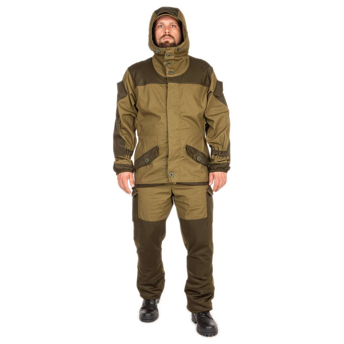 Костюм демисезонный камуфляжный Горка-3 состоит из куртки и брюк, изготовлен из ткани палатка, отделка ткань грета, подкладка – флис. Куртка свободного кроя, застежка центральная, на пуговицу. Кокетка, накладки и карманы с клапаном из отделочной ткани.