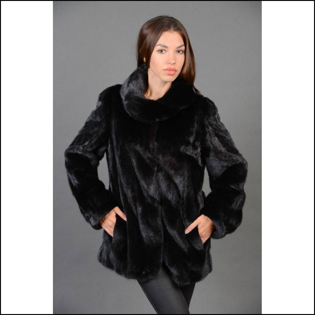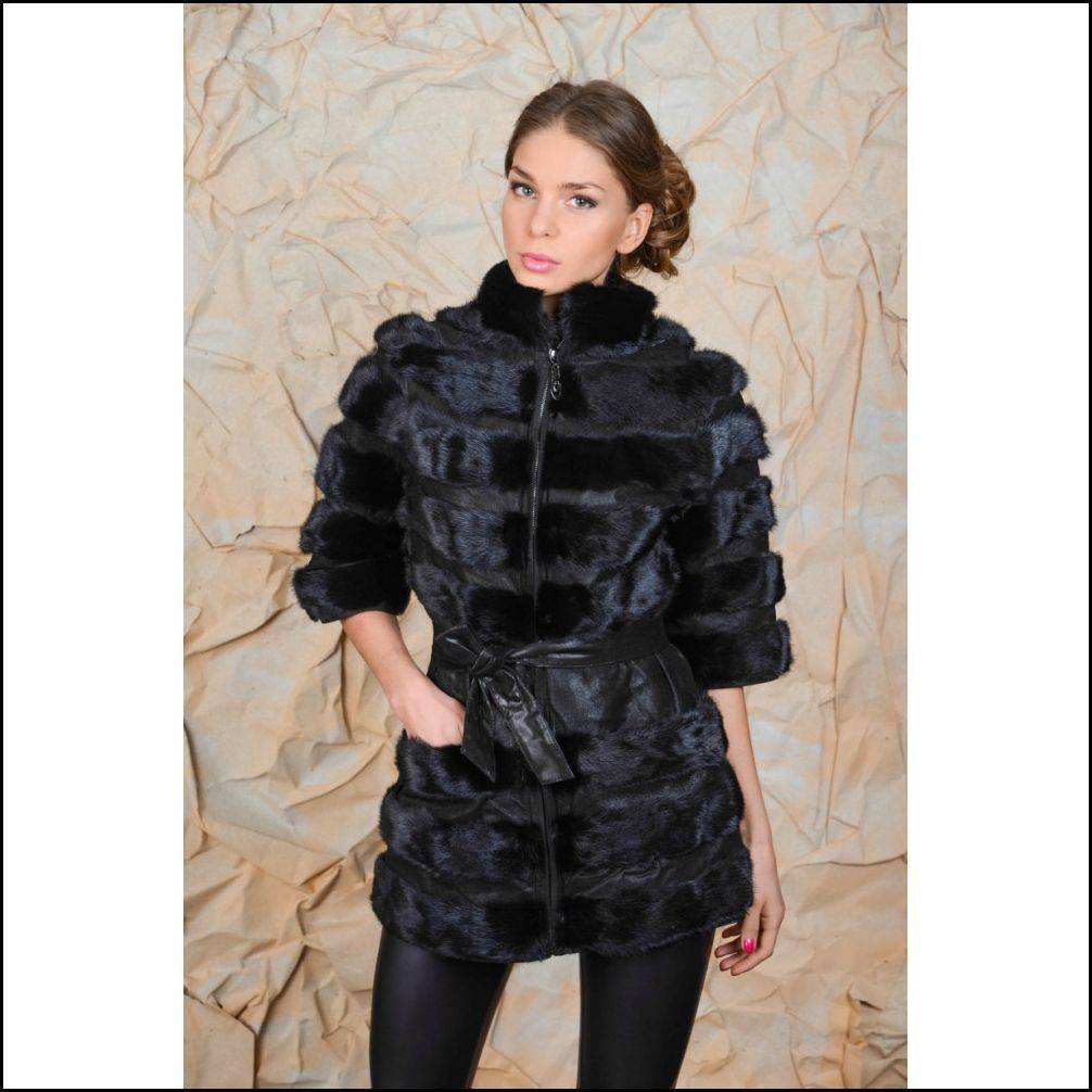 Безусловный хит – продольный вариант сшивания шкур. Трендовыми моделями являются варианты с поперечным сшиванием меховых полос и кожаных. Выполняются такие короткие шубы с воротником стойкой, широкими укороченными рукавами. Шубка автоледи из норки поперечка – эталонная модель для создания строгого, дорогого образа.