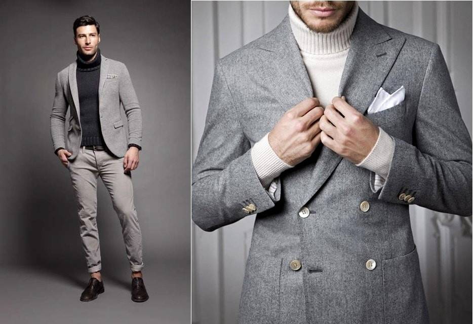 Мужчины с серыми глазами очень хорошо смотрятся в костюмах пепельного цвета, кареглазым брюнетам подойдет шоколадный оттенок. Поклонникам экстравагантности понравится костюм в шотландскую клетку, приверженцы классики предпочтут гусиную лапку, елочку или клетку «Принц Уэльский».